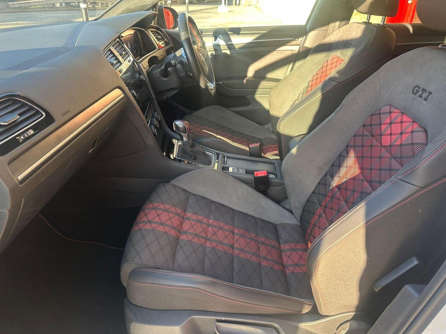 Red Stitching with Red 12 o Clock Marker on Leather Trimmer Three-Spoke Multifunction Steering Wheel with GTI Logo